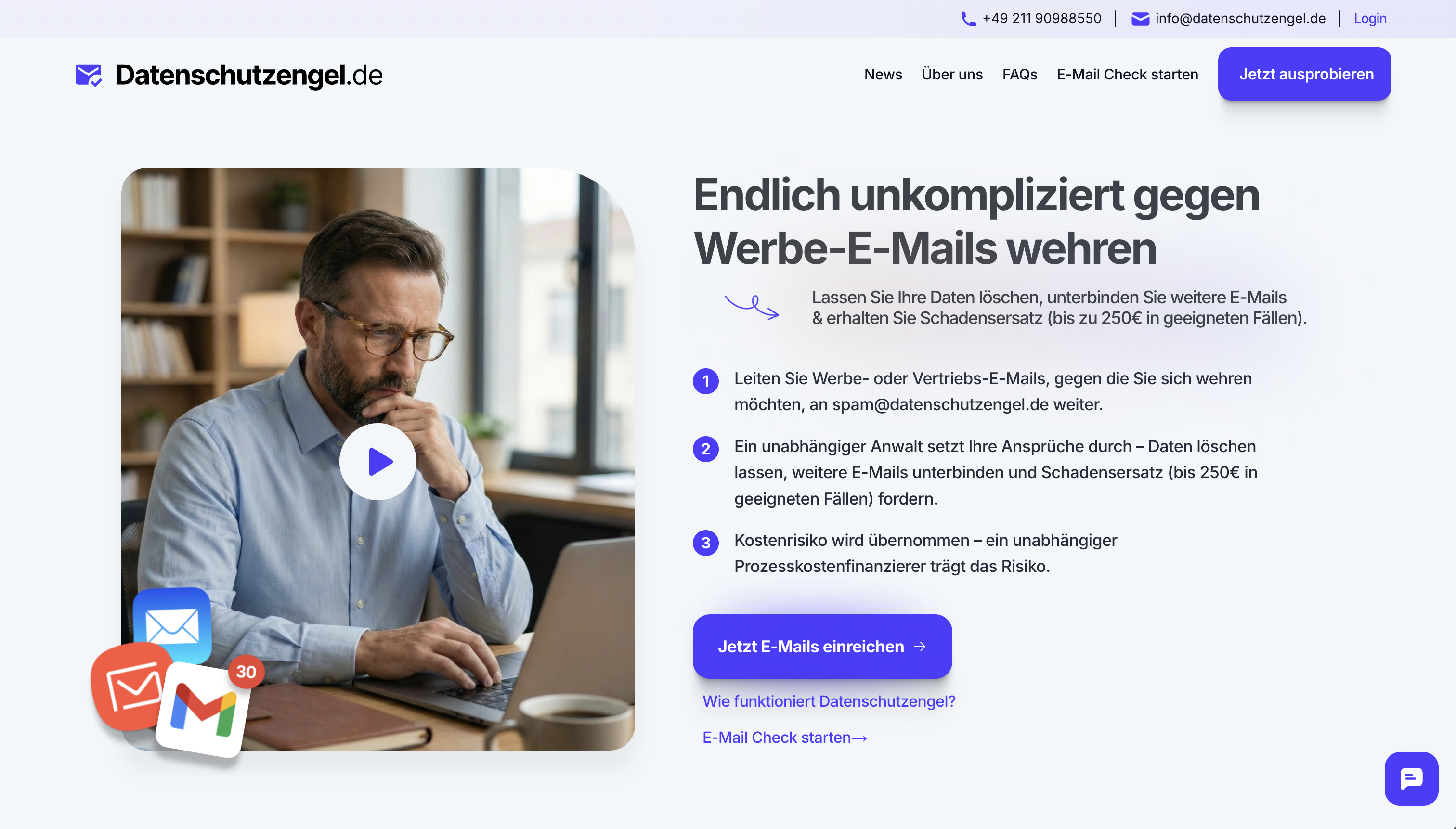 Datenschutzengel turns illegal cold emails into real compensation claims.